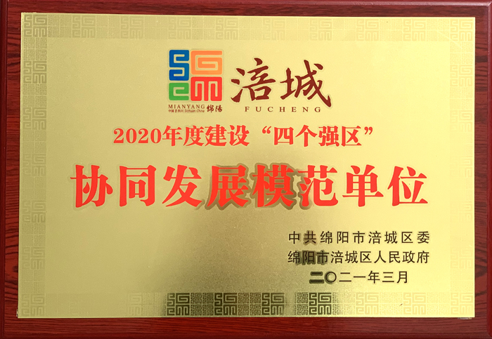 2021.3被涪城区市委、区政府评为2020年度建设“四个强区”协同发展模范单位